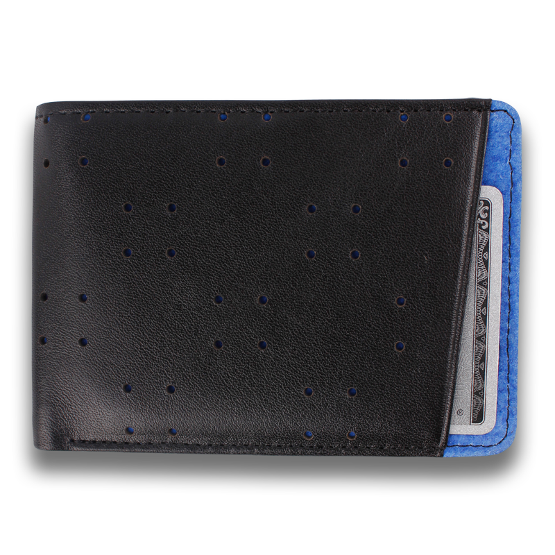 Looking for something just a little different? The AV1 has A traditional Bi-fold wallet shape slimmed down and updated with a splash of colour. Suede lined with a quick access outer card pocket.RFID protected.